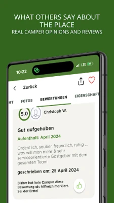 ร่วมเป็นส่วนหนึ่งของชุมชนนักตั้งแคมป์ที่ใหญ่ที่สุด ด้วยรีวิวมากกว่า 300,000 รายการจากประสบการณ์จริงของผู้ใช้งาน ให้คุณได้สัมผัสเรื่องราวและข้อมูลเชิงลึกจากผู้ที่เคยไปเยือนสถานที่เหล่านั้นมาแล้ว และคุณเองก็สามารถแบ่งปันประสบการณ์ รูปภาพ และความคิดเห็นของคุณได้โดยตรงภายในแอป camping.info App ยังมาพร้อมแผนที่ที่ใช้งานได้ทั้งแบบออนไลน์และออฟไลน์ เพื่อให้คุณสามารถเข้าถึงข้อมูลสำคัญได้แม้ยามไม่มีสัญญาณอินเทอร์เน็ต รวมถึงฟังก์ชันบันทึกสถานที่โปรดส่วนตัว สัมผัสประสบการณ์สุดพิเศษเหล่านี้ได้ฟรีเป็นเวลา 7 วัน จากนั้นเพียง 9.45 ยูโรต่อปี เพื่อให้ทีมงาน camping.info มุ่งมั่นพัฒนาแอปพลิเคชันให้ดียิ่งขึ้นไปอีก ตอบโจทย์ทุกความต้องการของนักตั้งแคมป์อย่างแท้จริง เพราะเราคือ camping.info – WE ARE CAMPING